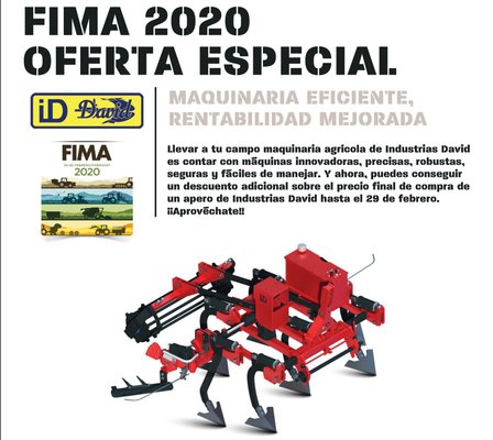 Descuento adicional sobre el precio final de compra de un apero de Industrias David hasta el 29 de febrero.